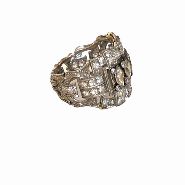 A FRENCH PLATINUM AND DIAMOND RING CIRCA 1930