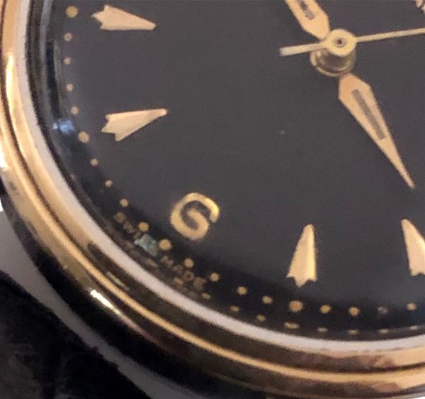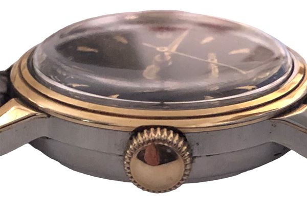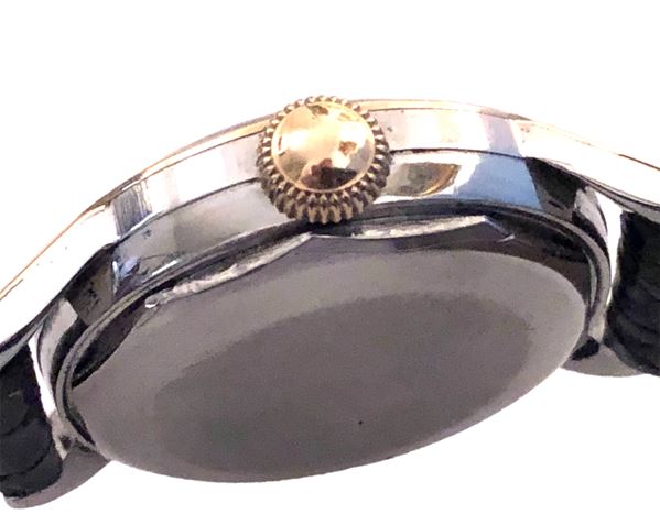 A very nice stainless steel and gold wristwatch with a round-shaped case back screw-down,Manual winding movement, black dial with Arabic numerals applied alternated.Dial, case and movement signed Diameter 32 mm
