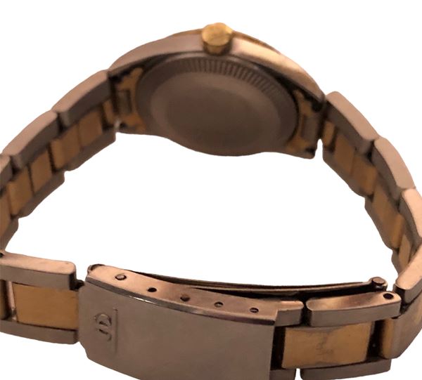date aperture at 3, bracelet type Oyster in gold filed and stainless steel with original