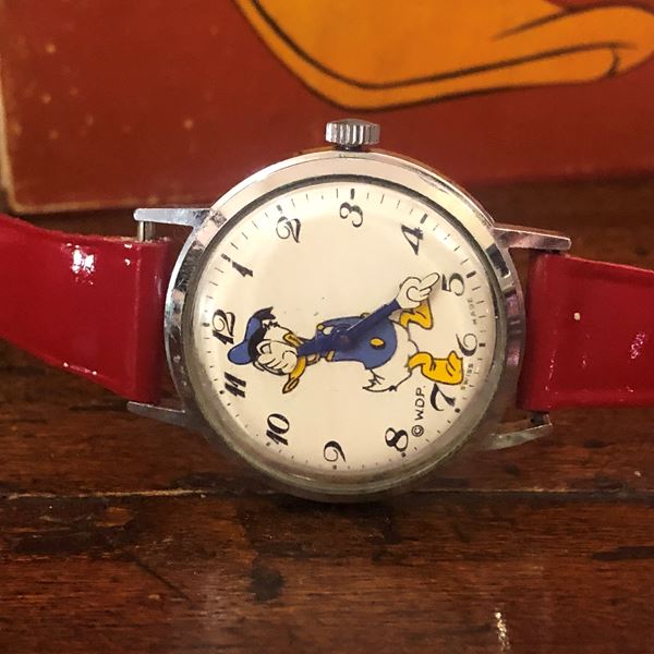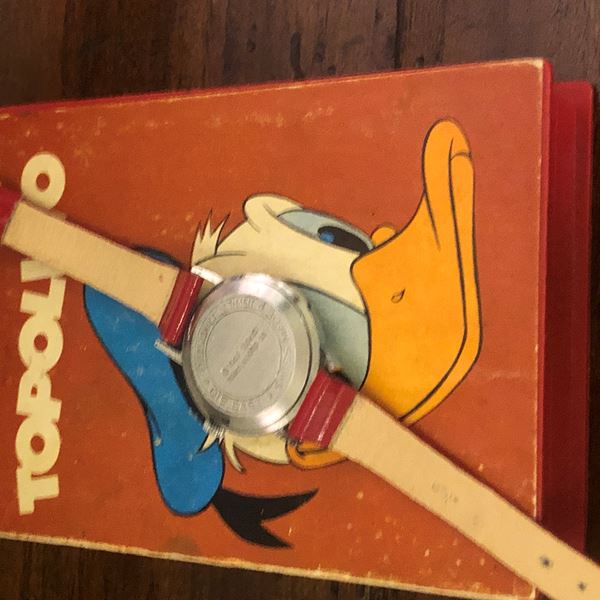 Manual-winding movement, white dial decorated with a polychrome Mickey Mouse,
