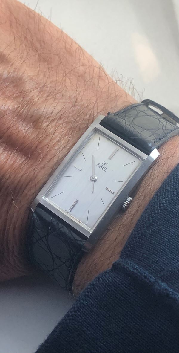 A fine watch in stainless steel with a rectangular shape, case snap on the back,