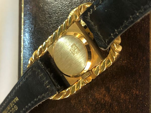 Very attractive wristwatch in 18 kt yellow gold, with a case snap on the back,
