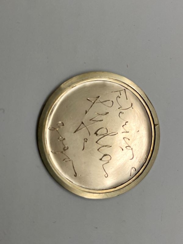 The back of the case is decorated with a noble coat of arms engraved and a signature inside the case