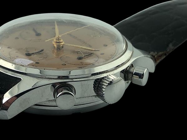 A rare and fine stainless steel chronograph, round shape, case back screw down,