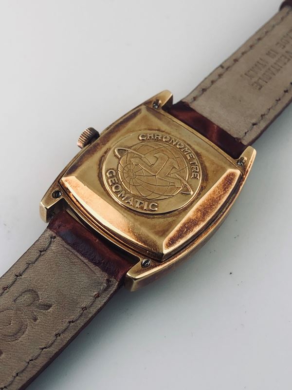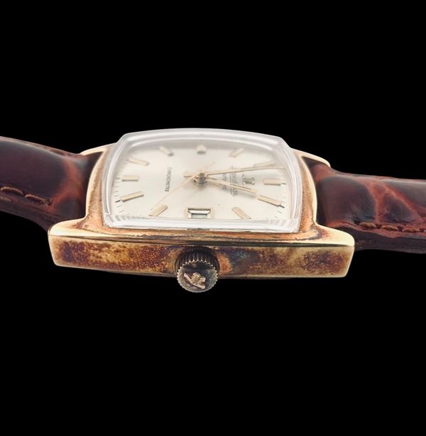 A very well-preserved, as new wristwatch in 18 kt yellow gold, rectangular shape, case snap-on back, self-winding movement, silvered dial with baton hour markers, date aperture at 3. Dial, case and movement signed
