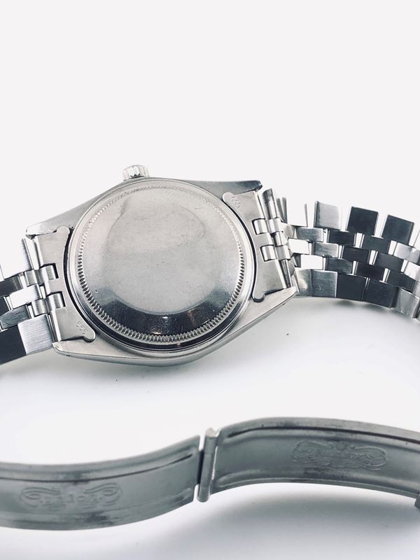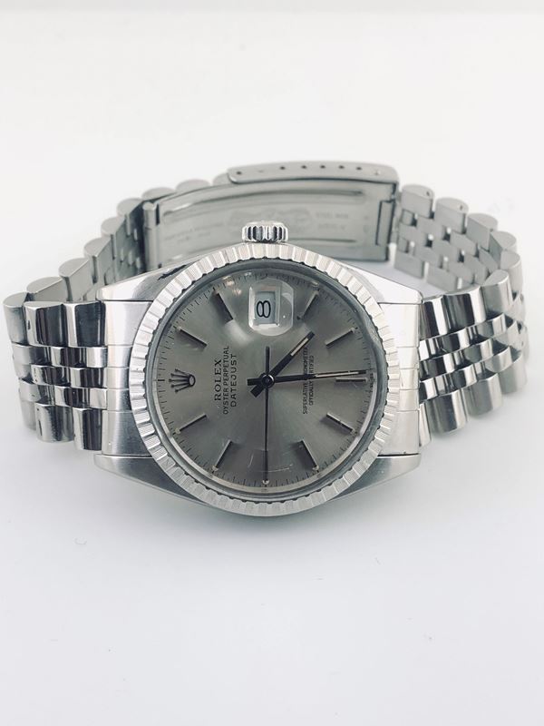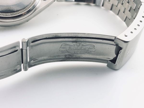 A stainless steel wristwatch with Oyster case, self-winding movement, silvered dial with baton hour markers, date aperture at 3, beautiful jubilee bracelet with clasp deployante signed and numbered.