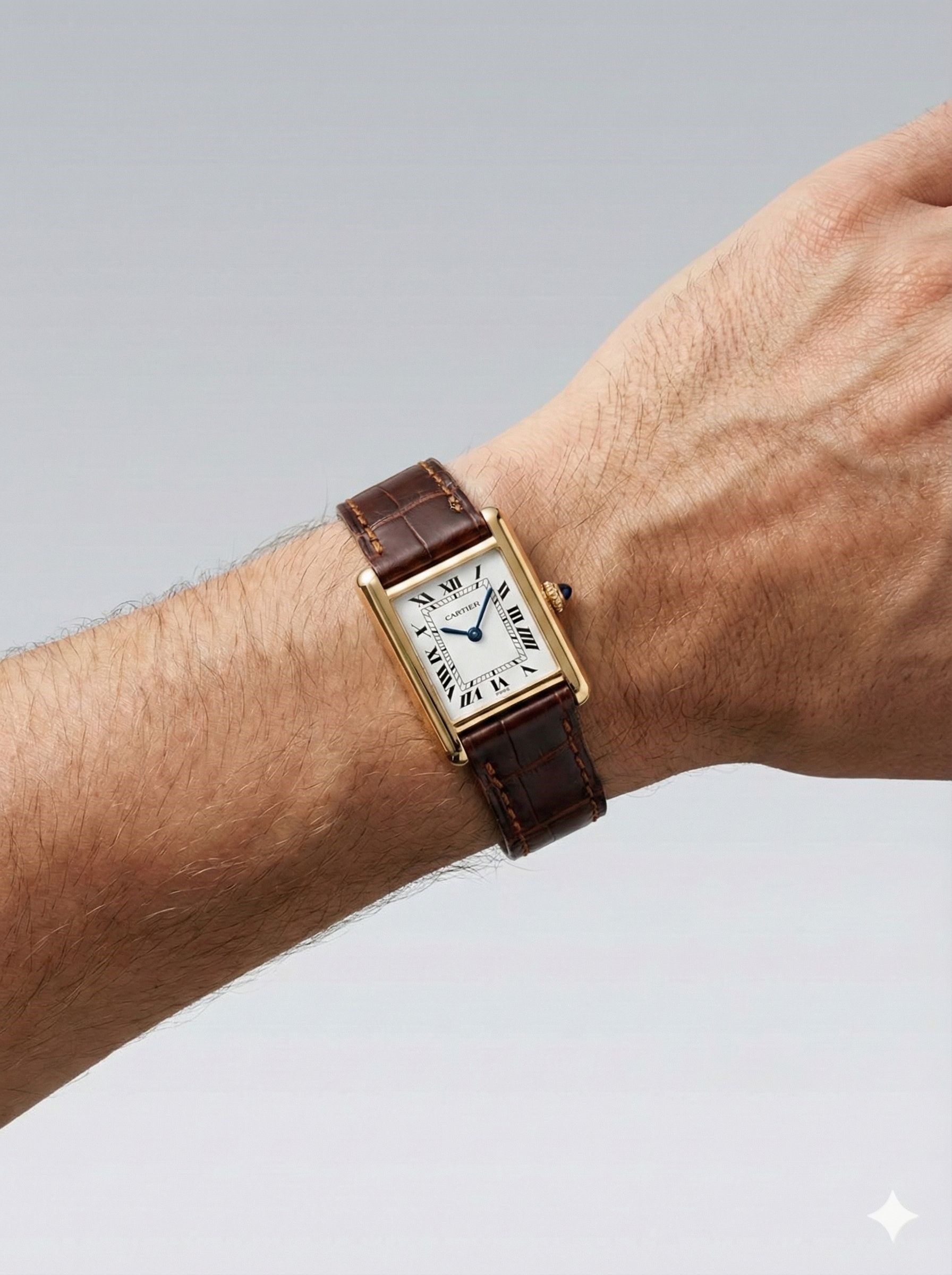 A lady's watch in 18kt, rectangular shape, case snap-on back, manual wind movement, white dial with Black Roman numerals hour markers, leather bracelet with original clasp deployante signed and marked