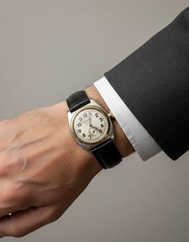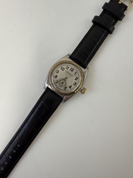 In stainless steel and gold bezel, self-winding movement, silvered dial with Arabic numerals hour markers ( not original ), subsidiary dial at 6