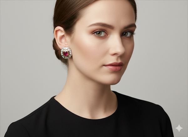 Gemstones: The rubies exhibit a well-saturated, deep pinkish-red hue. The surrounding diamonds are bright and well-matched for colour and clarity.