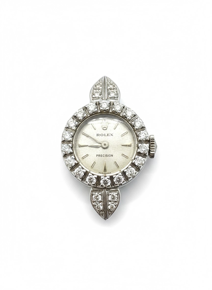 Movement: Manual wind mechanical movement; winding crown featuring the Rolex embossed logo.